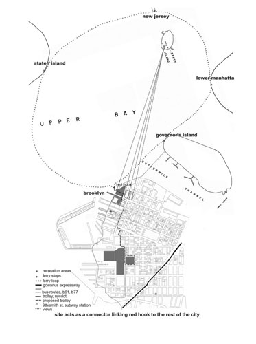 The roof shelter at a pier for a water taxi/ferry will facilitate communication between Red Hook and the rest of the city. The design seeks to explore organic rationality. The shelter has three aims: (1) to register times, (2) to filter climatic comfort, and (3) to provide a marker for the community.
